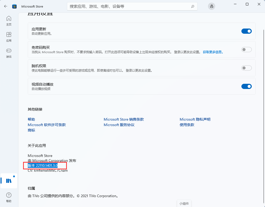 - 更新 Windows商店。(当前商店最新版本号是22110.1401.3.0)