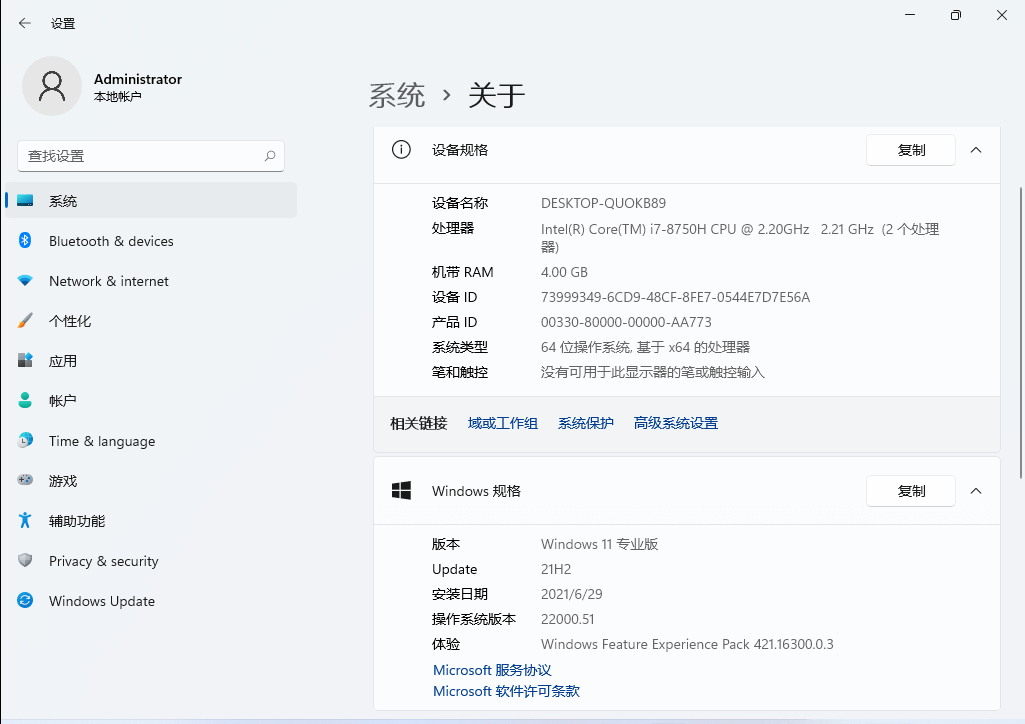 以下是在虚拟机(VMware 16.1.2 build-17966106)中演示安装流程,其中Windows 11为正式版。