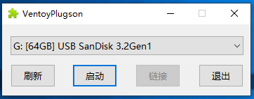 - 2、执行 VentoyPlugson.exe 如下图所示,选择Ventoy U盘点击 启动 按钮。