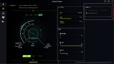 - 在控制台中往往有例如性能模式,安静模式,省电模式等模式选择,可以根据目前情况选择模式,譬如打游戏开性能模式,图书馆中可以开安静或者省电一类的模式;